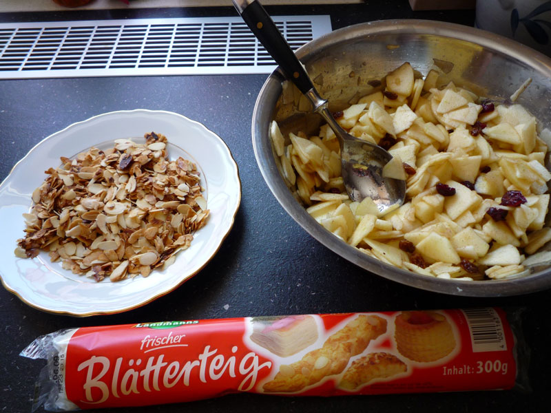 Die beiden Blätterteig-Rollen auslegen, leicht überlappen lassen, mit